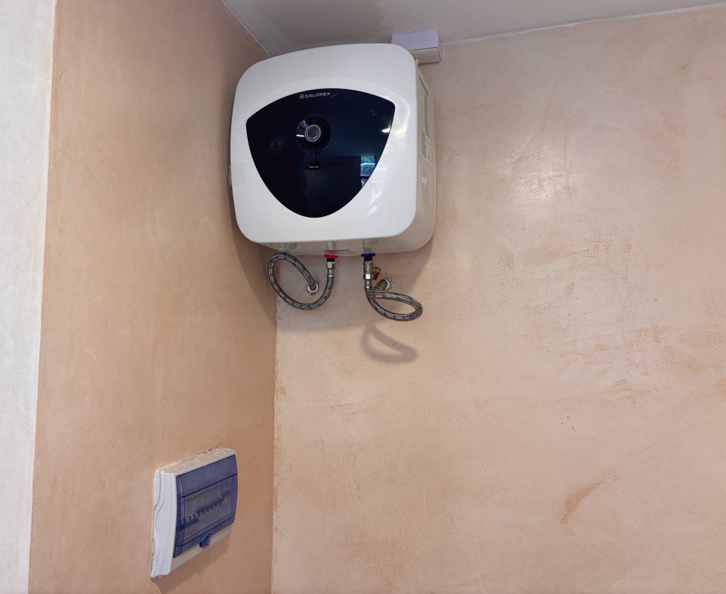 There is no use of gas in the whole project. all services (like hot water and stoves) are electric.